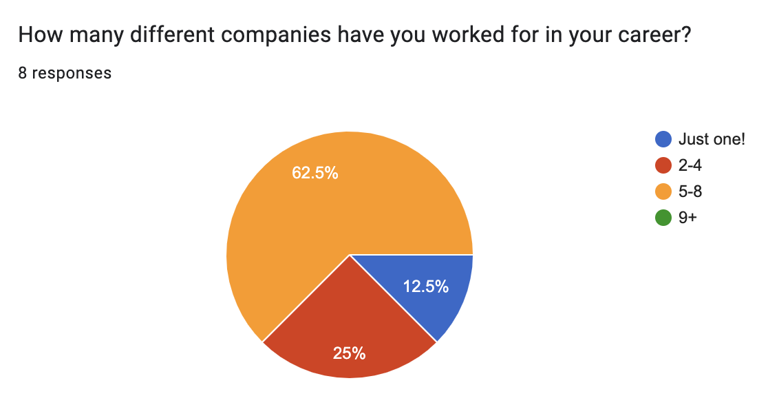 How many different companies have you worked for in your career? 5-8